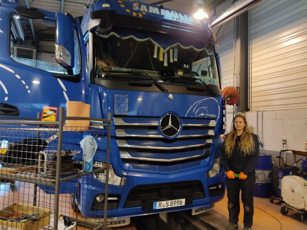 Pour Chelsea, suivre la voie de la mécanique poids lourd était d’une certaine logique après avoir baigné dans ce cadre grâce à son beau-père, lui-même mécanicien dans le transport routier.